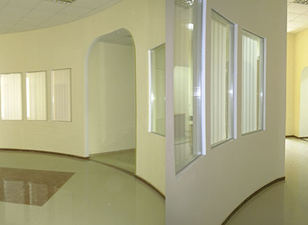 Всі офіси світлі з великими металопластиковими вікнами, ламінат, стіни пофарбовані, підвісні стелі, жалюзі.