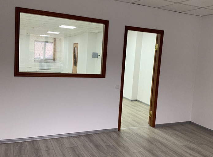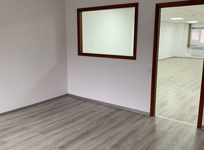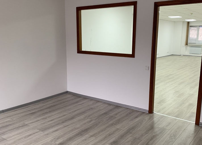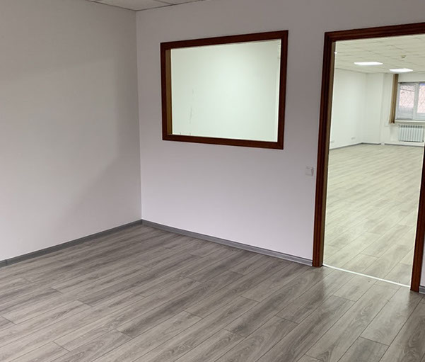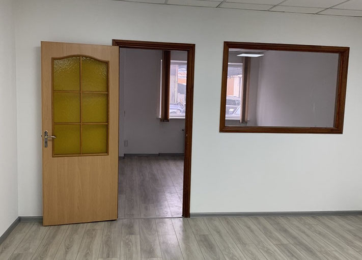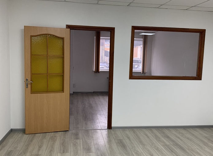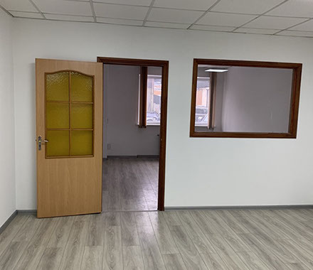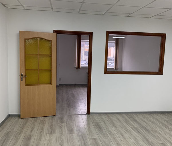 Пропонуємо в оренду офіс 108 на 2 кабінети площею 81,86 м², на 1 поверсі, 2 прохідна. В офісі ремонт - на підлозі ламінат, металопластикові вікна, підвісні стелі, стіни пофарбовані.