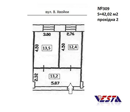 Предлагаем офис 309 на 2 кабинета площадью 42,02 м², на 3 этаже, 2 проходная. В офисе ремонт – на полу линолеум, металлопластиковые окна, подвесные потолки, стены окрашены.