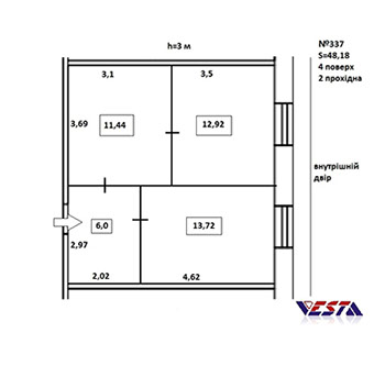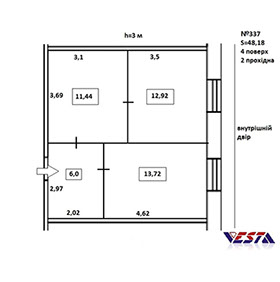 Пропонуємо офіс 337 площею 48,18 м² з трьома виділеними зонами, на 3 поверсі, 2 прохідна. В офісі ремонт: на підлозі лінолеум, металопластикові вікна, підвісні стелі.