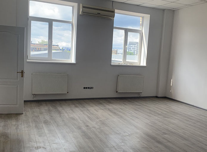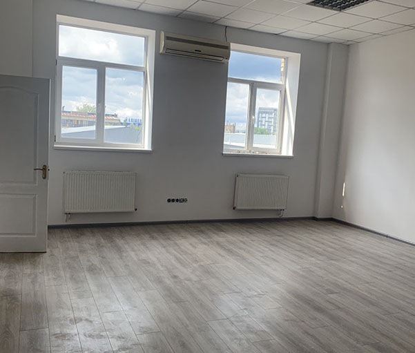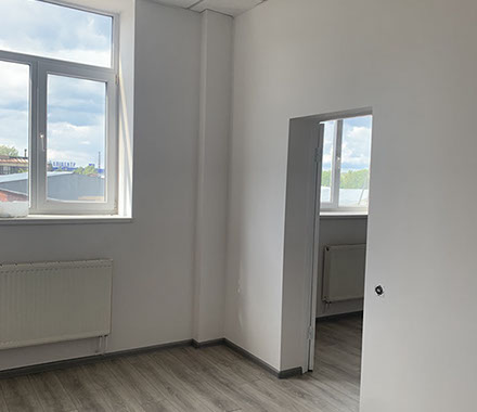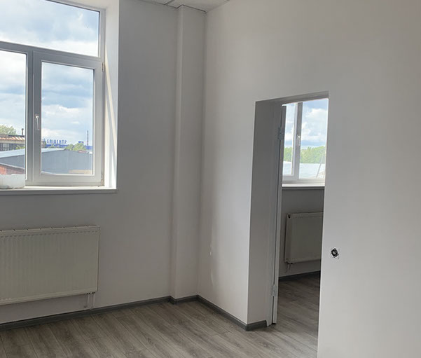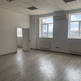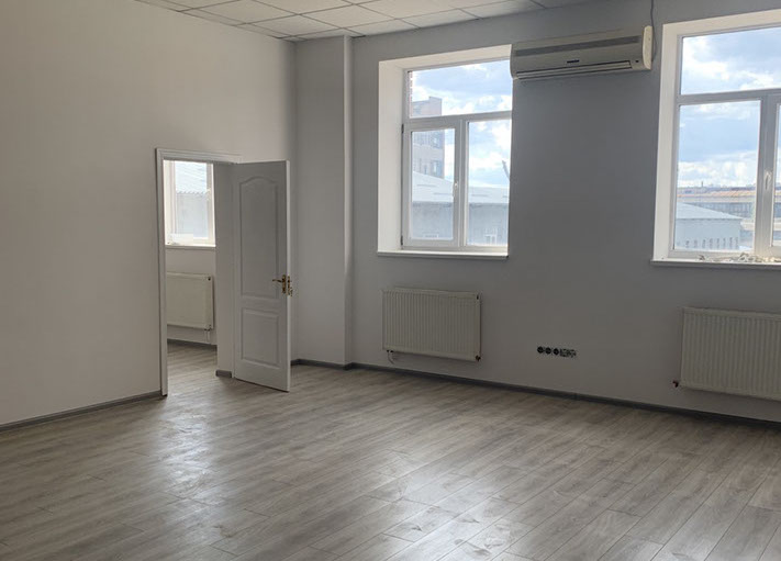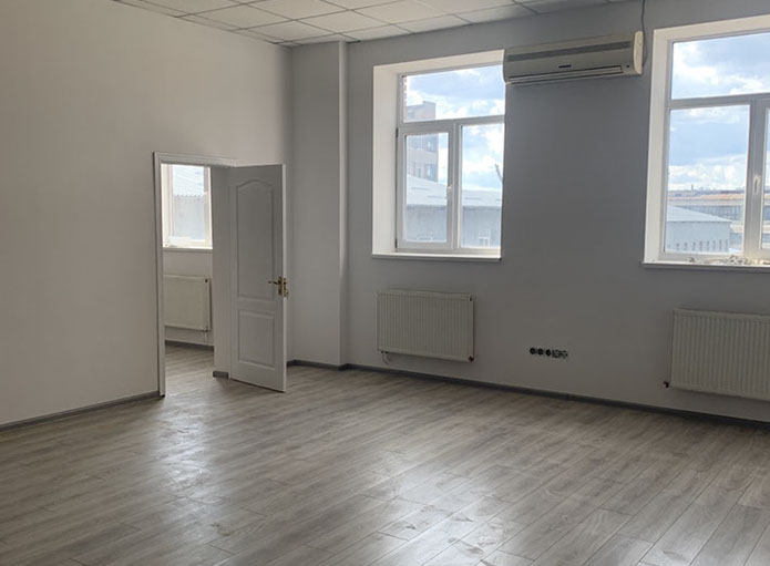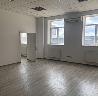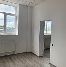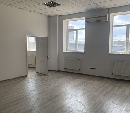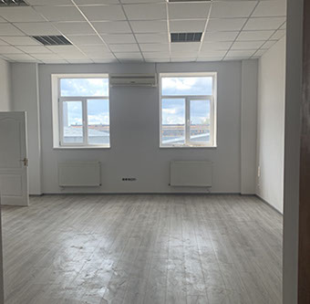 Предлагаем офис 418а на 2 кабинета площадью 55,91 м², на 4 этаже, 2 проходная. В офисе новый ремонт – на полу ламинат, металлопластиковые окна, подвесные потолки, стены окрашены, кондиционер.