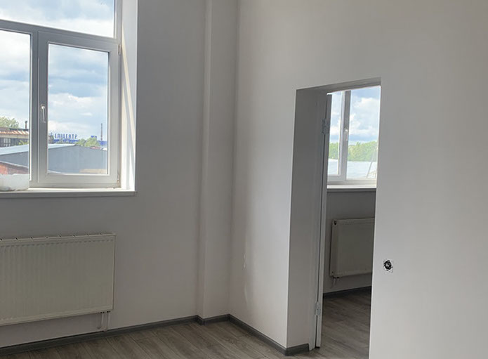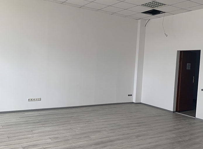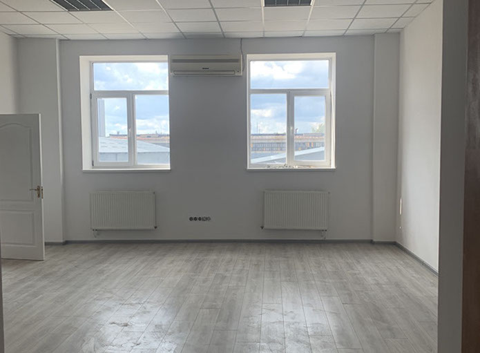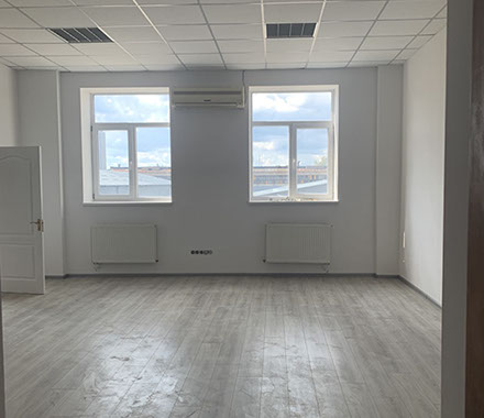 Пропонуємо офіс 418а на 2 кабінети площею 55,91 м², на 4 поверсі, 2 прохідна. В офісі новий ремонт – на підлозі ламінат, металопластикові вікна, підвісні стелі, пофарбовані стіни, кондиціонер.