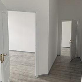 Пропонуємо офіс 427 на 3 кабінети площею 86,09 м², на 4 поверсі, 2 прохідна. В офісі новий ремонт – на підлозі ламінат, металопластикові вікна, підвісні стелі, пофарбовані стіни, кондиціонер.