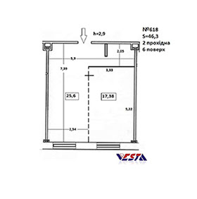 Предлагаем офис 618 на 2 кабинета площадью 46,30 м², на 6 этаже, 2 проходная. В офисе ремонт – на полу линолеум, металлопластиковые окна, подвесные потолки, стены окрашены.