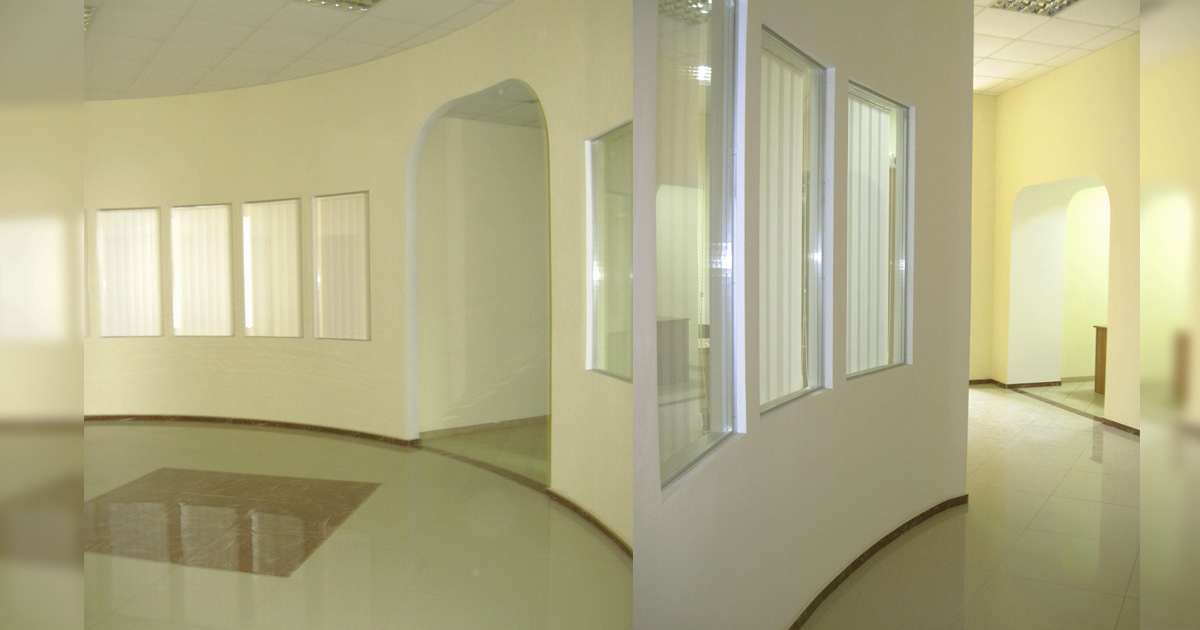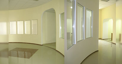 Всі офіси світлі з великими металопластиковими вікнами, ламінат, стіни пофарбовані, підвісні стелі, жалюзі.