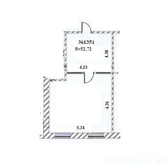 Предлагаем офис 1351 на 2 кабинета площадью 52,72 м², на 3 этаже, 4 проходная. В офисе ремонт – на полу ламинат, металлопластиковые окна, подвесные потолки, стены окрашены.