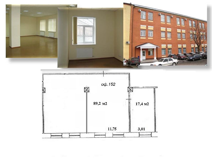 Пропонуємо офіс 152 на 3 кабінети площею 113,60 м², на 2 поверсі, 3 прохідна. В офісі ремонт – на підлозі лінолеум, металопластикові вікна, підвісні стелі, стіни пофарбовані.