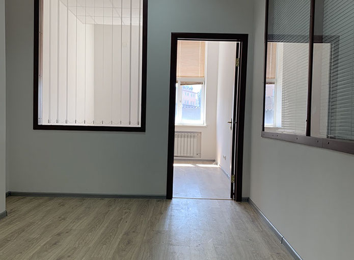 Пропонуємо офіс 186 на 2 кабінети площею 28,31 м², на 3 поверсі, 3 прохідна. В офісі ремонт – на підлозі ламінат, металопластикові вікна, підвісні стелі, стіни пофарбовані.