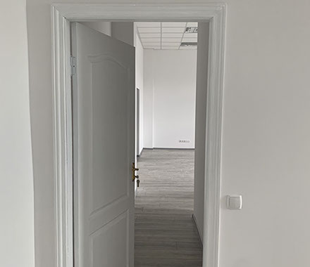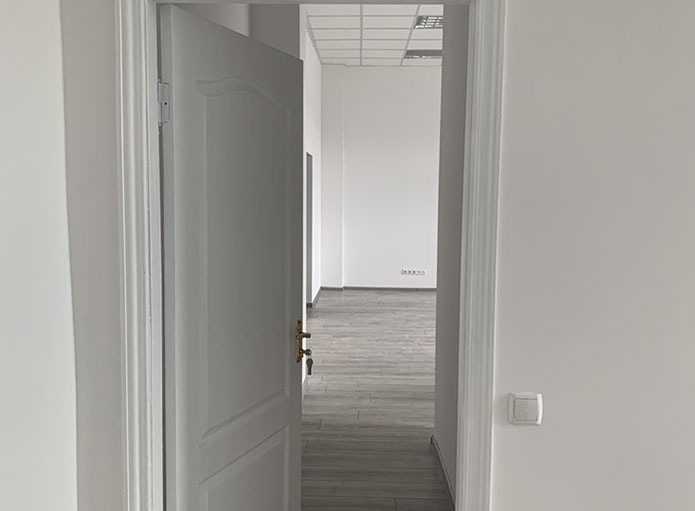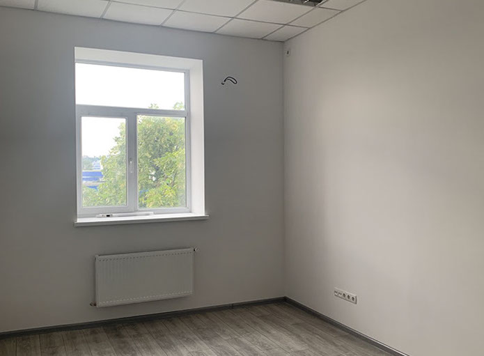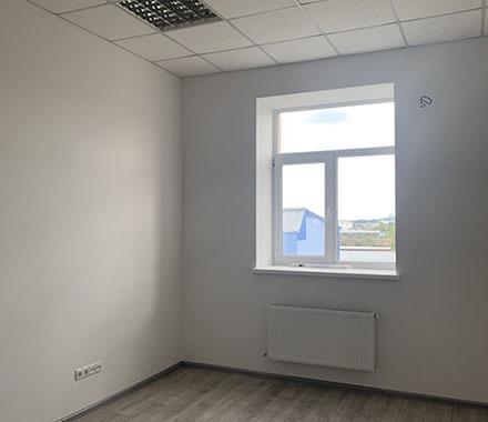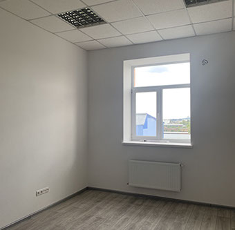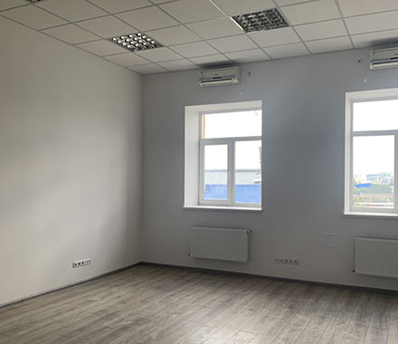 Пропонуємо офіс 427 на 3 кабінети площею 86,09 м², на 4 поверсі, 2 прохідна. В офісі новий ремонт – на підлозі ламінат, металопластикові вікна, підвісні стелі, пофарбовані стіни, кондиціонер.