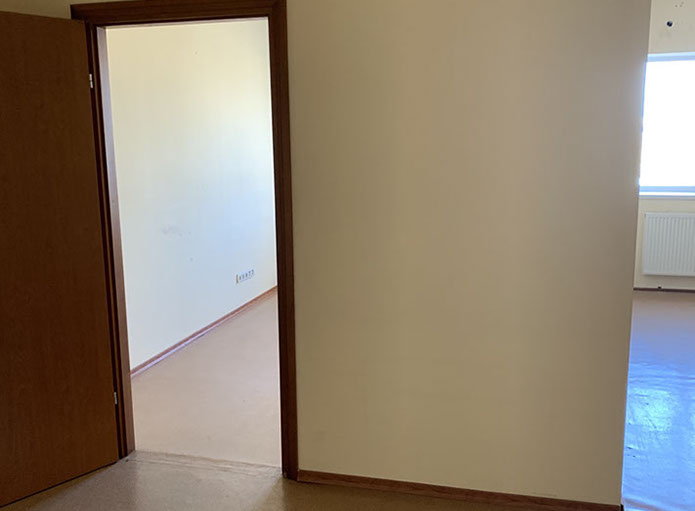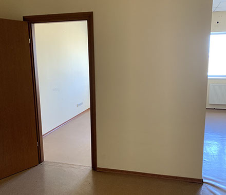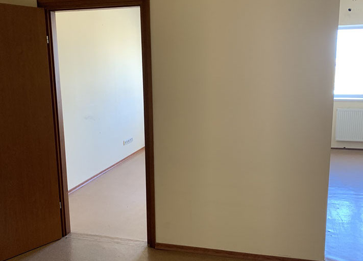 Пропонуємо офіс 508 площею 44,62 м², на 2 прохідні, 5 поверх, офіс на 2 кабінети. На підлозі лінолеум, стіни пофарбовані, металопластикові вікна, стелі підвісні Армстронг.
