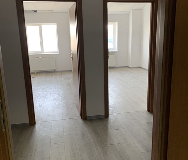 Предлагаем офис 611 на 2 кабинета площадью 45,50 м², на 6 этаже, 2 проходная. В офисе ремонт – на полу ламинат, металлопластиковые окна, подвесные потолки, стены окрашены.