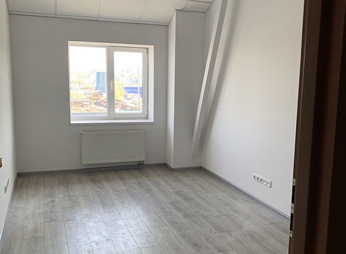 Предлагаем офис 615 на 2 кабинета площадью 46 м², на 6 этаже, 2 проходная. В офисе ремонт – на полу ламинат, металлопластиковые окна, подвесные потолки, стены окрашены.