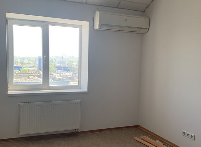 Предлагаем офис 617 на 2 кабинета площадью 46,09 м², на 6 этаже, 2 проходная. В офисе ремонт – на полу линолеум, металлопластиковые окна, подвесные потолки, стены окрашены, кондиционер.