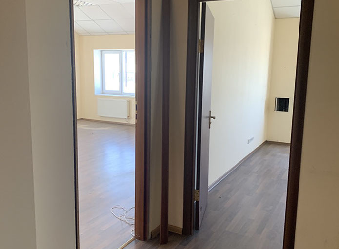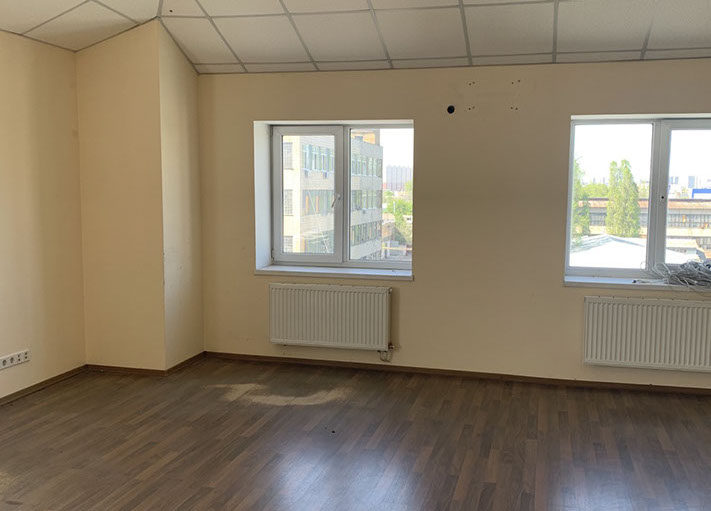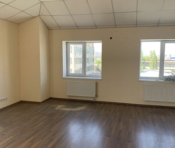 Пропонуємо в оренду офіс 622 на 2 кабінети площею 64,00 м², на 6 поверсі, 2 прохідна. В офісі ремонт – на підлозі лінолеум, металопластикові вікна, підвісні стелі, стіни пофарбовані.